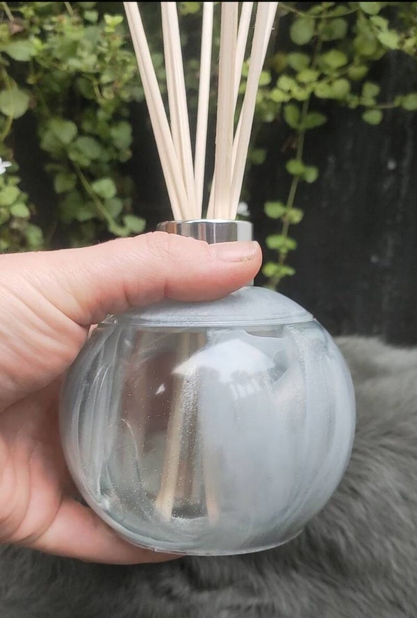 De diffuser is gemaakt van hoogwaardige kwaliteit epoxy. De diffuser is 9,8 cm hoog (zonder geur stokjes), 9,8 cm breed en is voorzien van een zilveren dop.